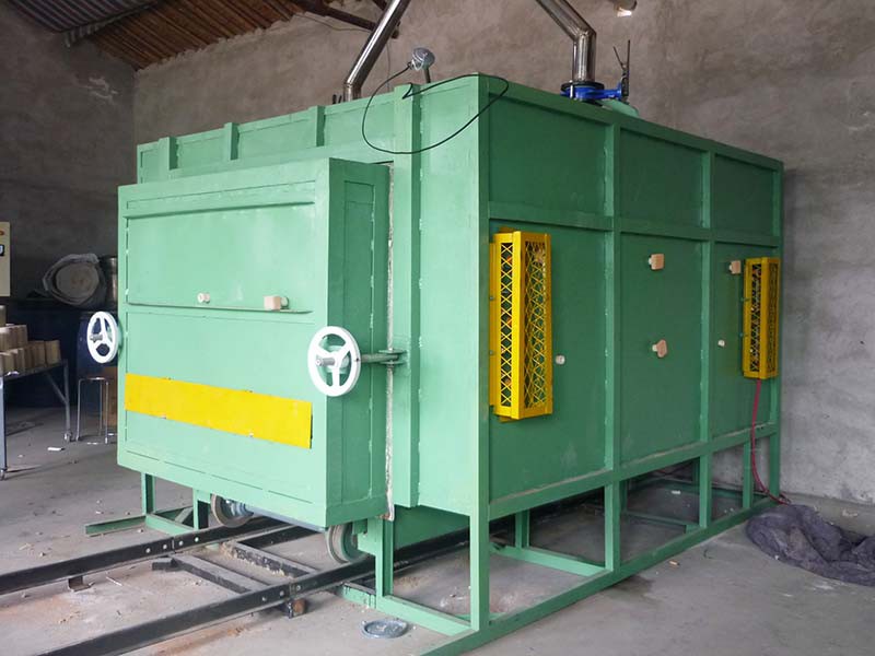 臺(tái)車爐主要用于高鉻、高錳鋼鑄件、灰口鑄鐵件、球墨鑄鐵件、軋輥、鋼球、破碎機(jī)、錘頭、耐磨襯板淬火、退火、時(shí)效以及各種機(jī)械零件熱處理。它是國家標(biāo)準(zhǔn)節(jié)能型周期式作業(yè)爐,超節(jié)能結(jié)構(gòu),采用復(fù)合纖維保溫,超輕質(zhì)高強(qiáng)度微珠真空球節(jié)能磚,生產(chǎn)防掉絲上斜20°擱絲磚, 爐口防工件撞擊磚,自動(dòng)密封臺(tái)車和爐門,一體化連軌,不需基礎(chǔ)安裝,放在水平地面即可使用。